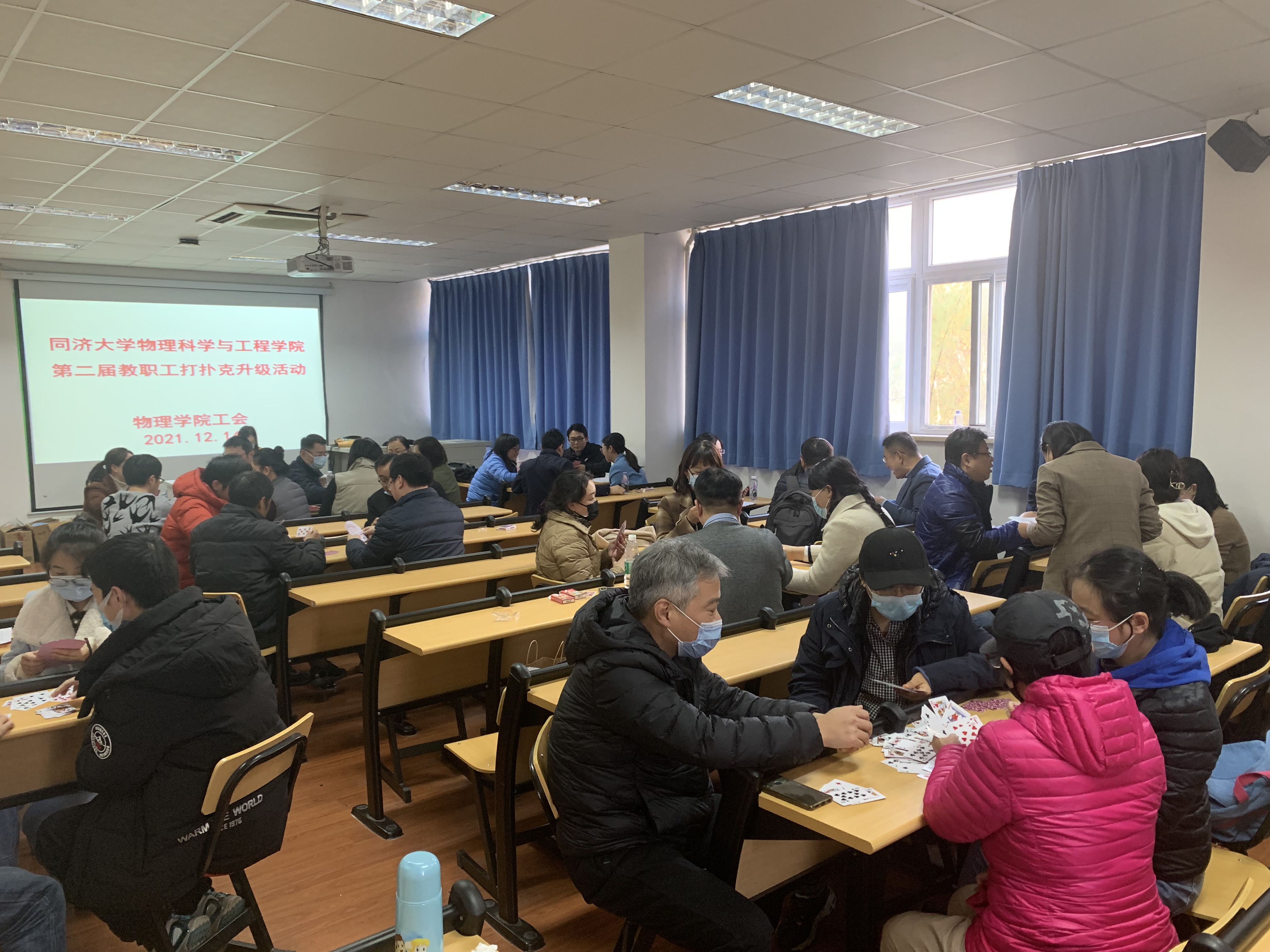 为了丰富学院教职工的文化娱乐生活,缓解教职工的紧张工作节秦,倡导健康的文化生活习惯,建立和谐的工作环境,2021年12月14日下午,物理学院举行了第二届教职工扑克牌升级活动。 本次扑克牌升级活动由学院工会组...