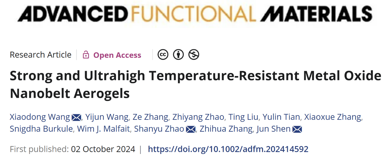 yl7703永利集团王晓栋/沈军团队高强度耐高温金属氧化物气凝胶的重要研究进展发表于《先进功能材料》