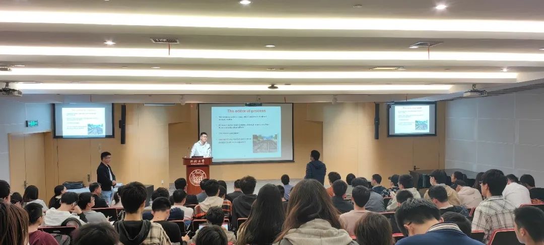 Nature Communications高级编辑诸佳俊博士首先向大家介绍了Nature系列期刊,从题材、内容、编辑等方面讲述Nature、Nature研究型子刊、Nature Communications对文章要求的异同,并重点解析了Nature及其旗下刊物的构架、视野与目标内容以及例文。讲座使得听众对Nature系列刊物的定位与偏好有了具体认识,便于找到契合自己研究方向的目标期刊。接着诸佳俊编辑还详细介绍了编辑预审的流程和不同阶段编辑的判断依据,深入讲解了论文撰写技巧、论文投稿注意事项(投稿信设计、审稿流程剖析、审稿意见回复)和投稿后事宜(稿件接收后事宜、拒稿后申诉)等。