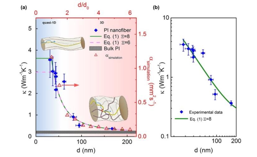 1) 关于低维有机高分子聚合物(薄膜、纳米纤维)热输运调控的实验研究甚少,使得高分子热传输理论模型缺少实验的支撑。有机高分子聚合物内部分子链互相交叠嵌套,使得热传输机制变得极为复杂。所以亟待大量的实验结果用于建立新的理论模型,以阐述高分子聚合物材料的热传输本质。