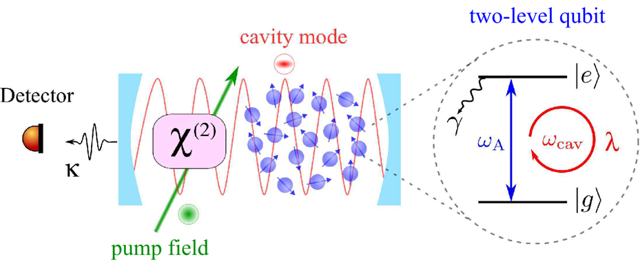 图1: 量子驱动的Tavis-Cummings腔量子电动力学系统。