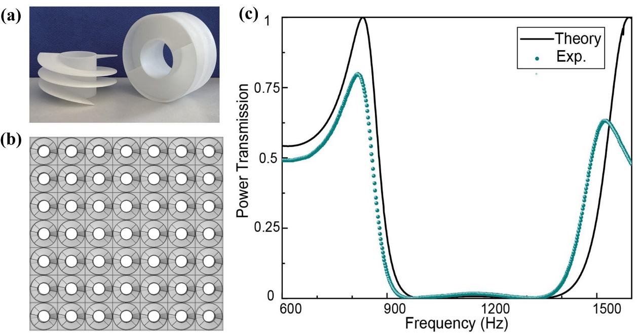 依托于“建筑-声学一流学科共建平台”,我校yl7703永利集团声学研究所的李勇研究员课题组与毛东兴教授课题组合作,在建筑声学的通风隔声窗领域取得重要进展。研究提出了一种以号筒状中空螺旋隔声单元为基础而构建的类镂空雕花薄板状结构,突破了传统隔声窗的高气流压力损失及现有超构隔声窗的窄带隔声等局限,实现了兼具高效通风和宽带隔声的通风隔声窗设计。相关研究成果于2020年4月10日以“Broadband Acoustic Ventilation Barriers”为题发表在国际物理学期刊Physical Review Applied第13卷上 [Phys. Rev. Applied 13, 044028 (2019)]。硕士研究生孙曼为第一作者,毛东兴教授、王旭副教授和李勇研究员为论文共同通讯作者。