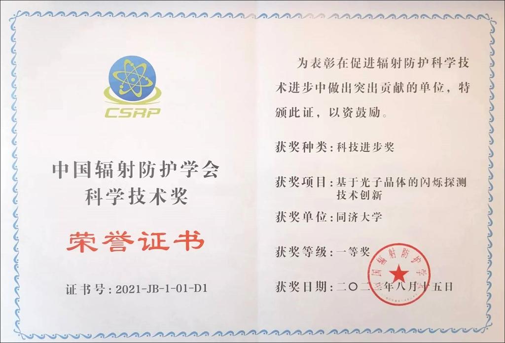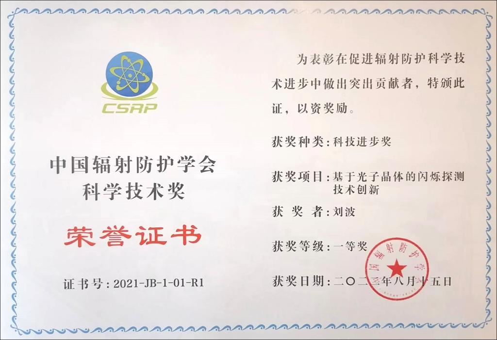 yl7703永利集团牵头完成的项目“基于光子晶体的闪烁探测技术创新”荣获中国辐射防护学会科技进步一等奖