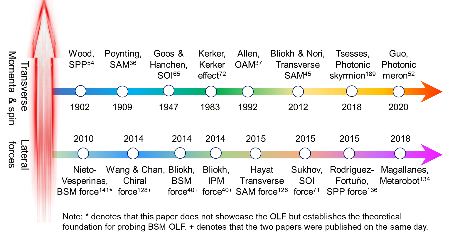 图2、光横向动量和横向光力的发展历程