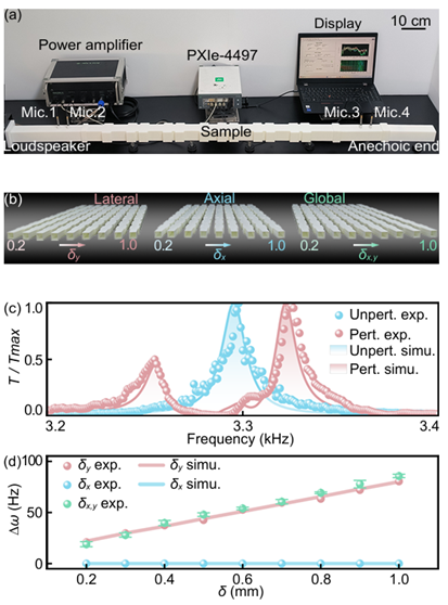近日,yl7703永利集团声学研究所李勇教授团队和毛东兴教授团队的王旭教授在连续谱中拓扑束缚态(Topological Bound States in the Continuum,TBIC)研究方面取得进展。团队基于对称性调控,构建了一种具备TBIC的声学波导系统,揭示了TBIC兼具拓扑边界态的强鲁棒性与连续谱中束缚态(BIC)的高灵敏度双重特征,并在透射谱中观测到其对不同扰动的极端各向异性响应行为。相关成果以“Observation of Extreme Anisotropic Sensitivity at Topological Bound States in the Continuum”为题发表于《物理评论快报》(Physical Review Letters)。