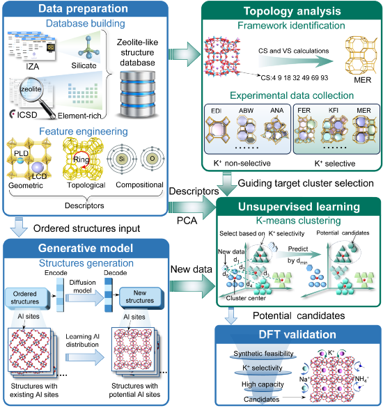 yl7703永利集团/上海自主智能无人系统科学中心任捷教授团队在机器学习加速高选择性多孔结构领域取得了一项重要进展,研究成果以“Machine learning for the generative discovery of K+-selective porous structures with aluminum sites”为题发表于国际知名期刊《Physical Review Materials》, 为基于机器学习的功能结构发现提供了高效的新框架。