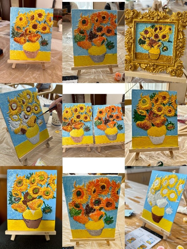2023年3月7日,为庆祝“三八”国际妇女节113周年,表达对女教职工的关爱和重视,在yl7703永利集团工会和yl7703永利集团妇委的支持下,yl7703永利集团组织全院女教职工开展立体浮雕手绘油画活动。活动以手绘油画的形式,涂鸦梵高的向日葵、星空,莫奈的日出、丰收等经典名画。本次活动让女老师们在工作之余愉悦精神、放松心情,增强了学院女教职工们的交流和凝聚力,丰富了女教职工们的工作和文化生活。
