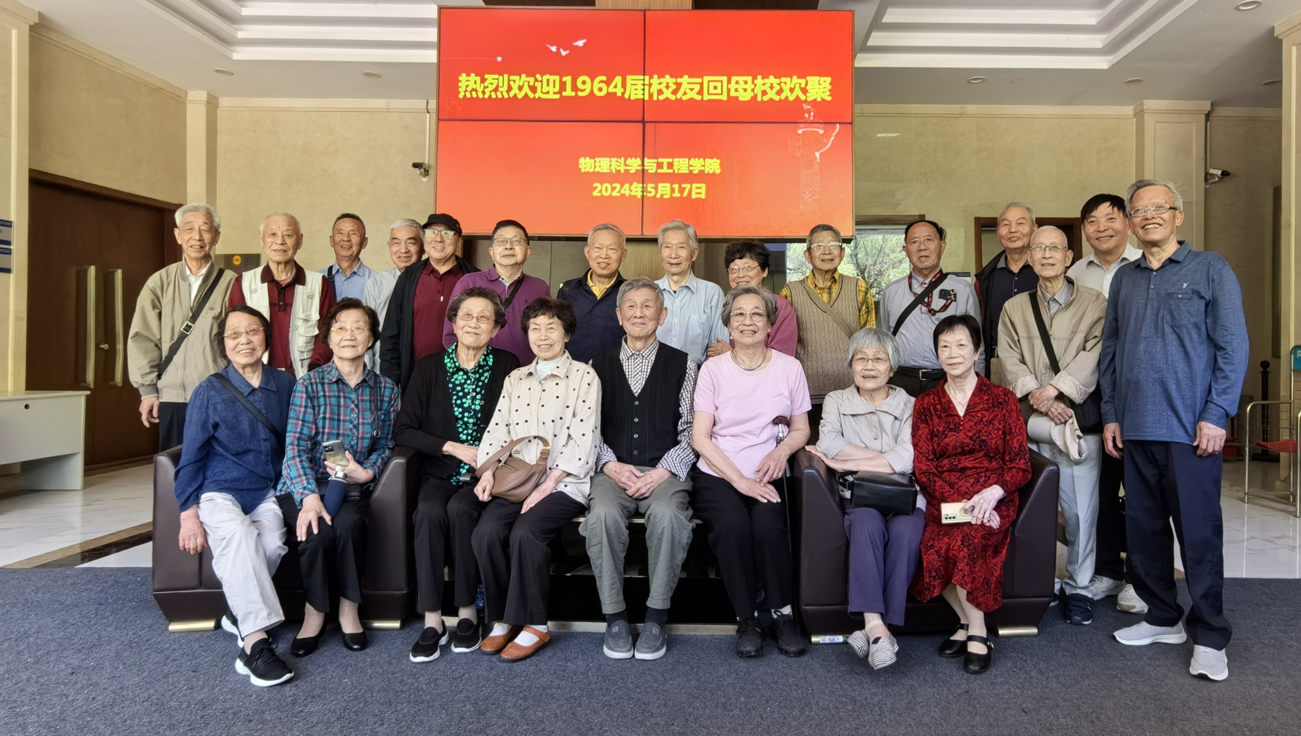 2024年5月17日,yl7703永利集团迎来了1964届物理学院校友。他们从祖国各地赶赴母校,虽然均已八十多岁,但都神采奕奕、红光满面。毕业六十年,又逢yl7703永利集团117年校庆,老同学们兴奋而激动。他们的到来不仅是对母校的一种致敬,也是对自己青春岁月的一次回顾和怀念。