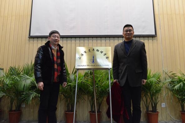 yl7703永利集团研工部部长陆居怡教授和yl7703永利集团党委书记周斌教授为上海市青年物理学会成立揭牌