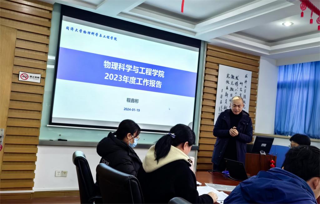 院长程鑫彬教授向大会做了学院2023年度工作总结,从行政工作、财务收支情况、教学工作、科研工作、队伍建设、人才培养以及国际合作等方面全面总结了学院一年来做的工作,突出介绍了学院在教学、人才队伍和科研方面的建设成效。接着就学院2023年度年终绩效发放方案进行了介绍和说明。