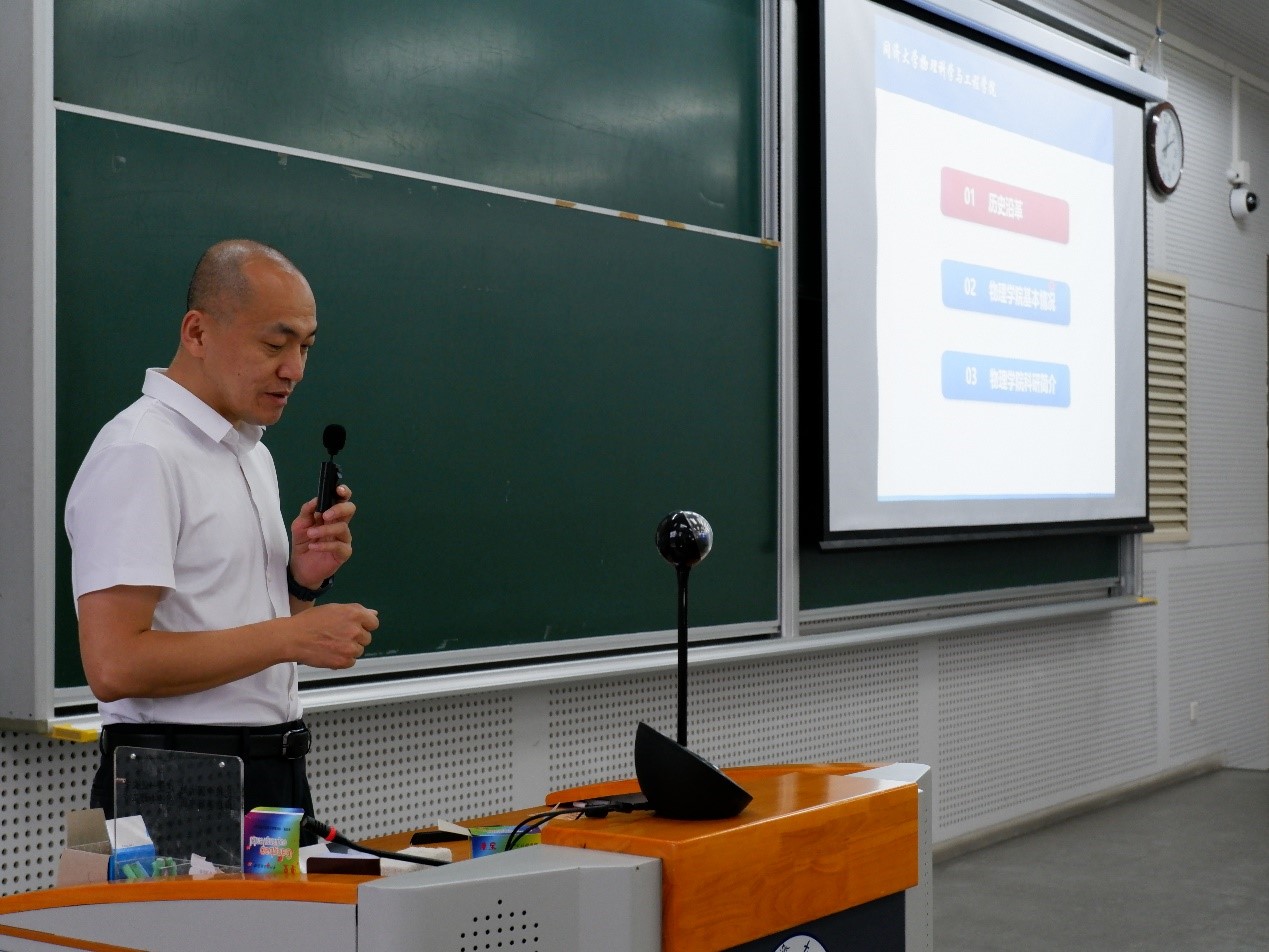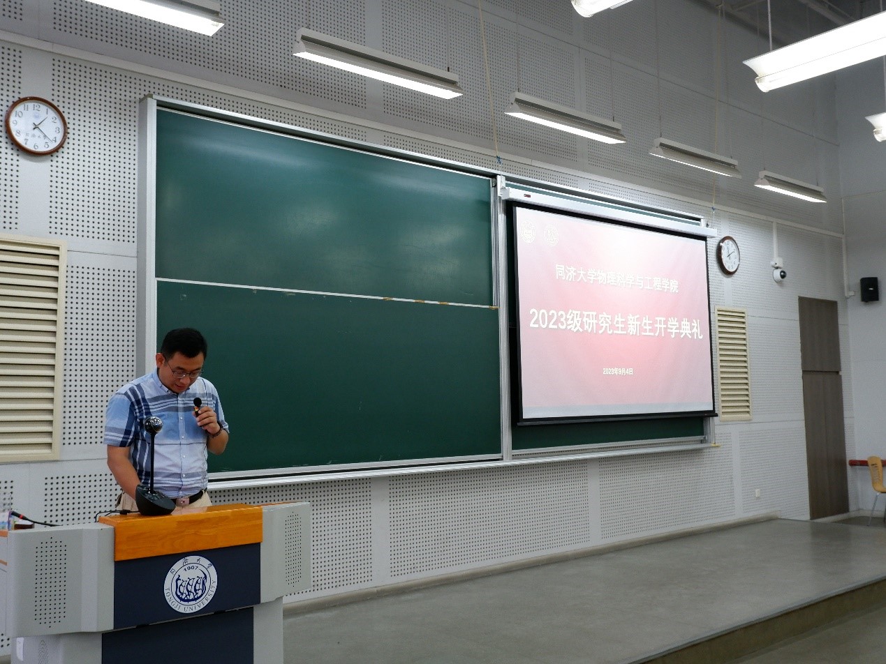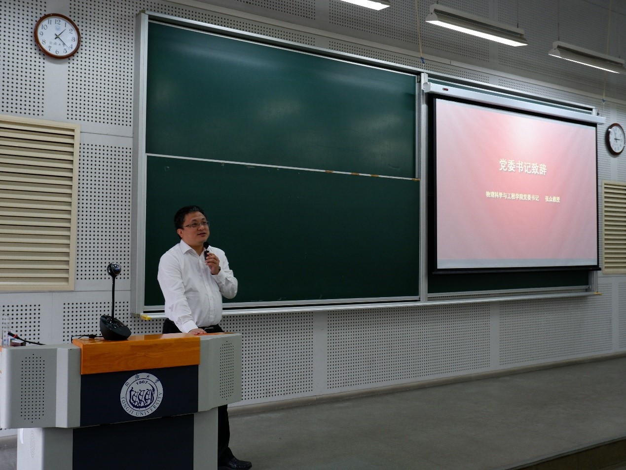 典礼最后,学院党委书记张众教授致辞,他在发言中提到,物理学院有最优越的研究平台、最优秀的导师团队、承担了许多学科前沿的科研项目和国家战略任务,为区域经济的发展做出了巨大的贡献,目前同学们处在人生中最后一次可以改变自己未来的关键时期,希望同学们在接下来的三到五年时间里,能潜心学习,好好利用学院创造的优渥条件,为自己的未来打下坚实的基础,在未来能拥有相对稳定的工作,为国家的发展不懈努力,做不负时代的优秀青年。