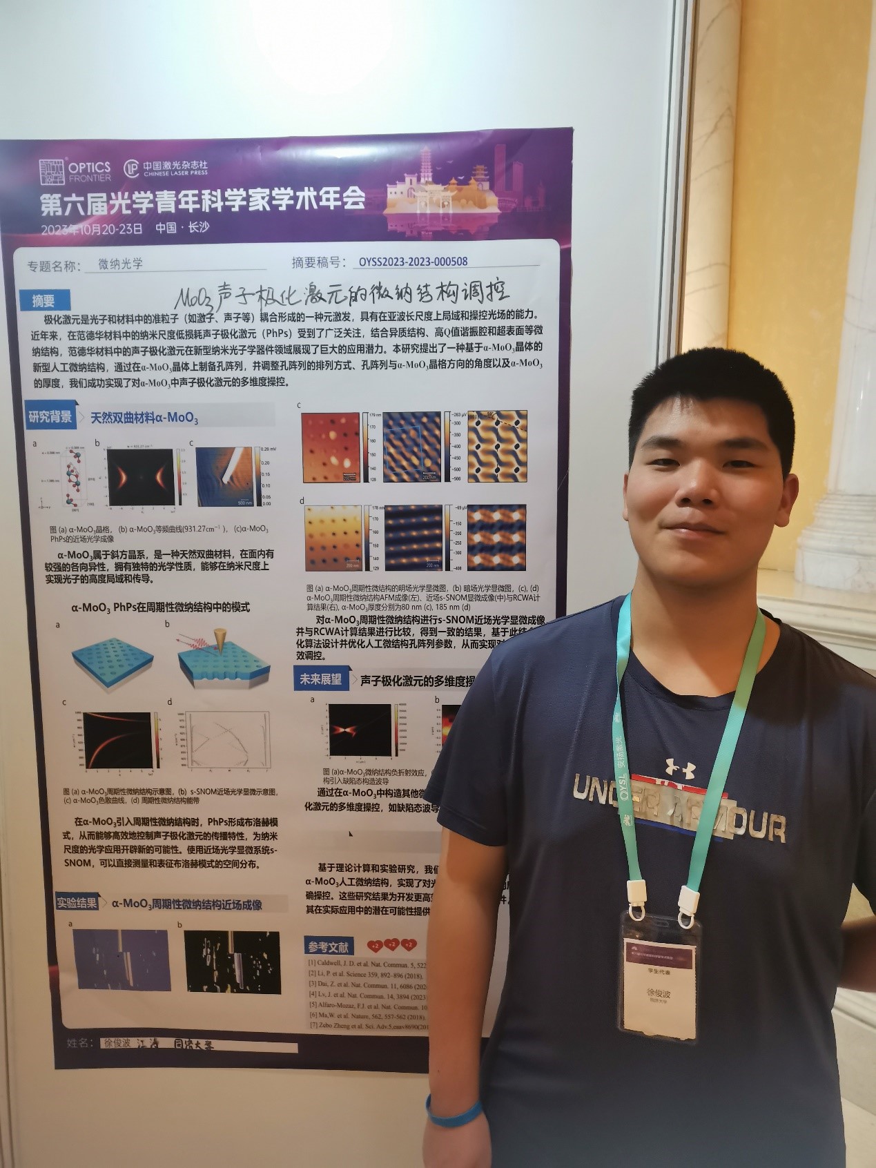 yl7703永利集团始终坚持把本科人才培养工作放在首要位置,鼓励同学们将课堂知识的学习和实践相结合,让学生不仅在课堂上学习知识,更能走进实验室,积极参与前沿研究,并最终突破自我,获得创新成果。在本次论坛中,学院大四光电专业本科生徐俊波和大三物理拔尖本科生程成积极参与,展示了自己的研究成果并张贴海报,获得了与会师生们的广泛关注。