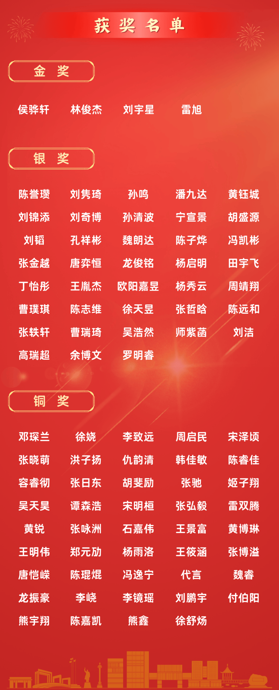 金奖获得者:雷旭(左三),林俊杰(左四),刘宇星(右三),侯骅轩(右二)