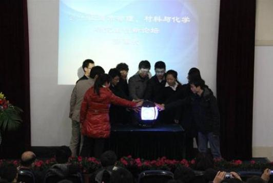 在物理系党委书记周斌老师的主持下,上海市物理,材料与化学研究生创新论坛开幕式开幕。首先,周斌老师介绍到为了为了进一步搭建和完善沪上高校及科研院所在物理、材料、化学等相关学科的学术创新交流合作平台,yl7703永利集团联合上海市物理学会等多家单位,期望通过该论坛在高校及科研院所之间树立良好的学术交流风气,深入探索大学生创新教育新模式,使本次论坛成为促进学生与专家们沟通交流与合作的良好平台。并详细介绍了参加此次论坛的高校与研究院所。紧接着,yl7703永利集团副校长陈以一教授发表了“虽寒风似剪刀,学术氛围仍火热”的开幕词,鼓励多院校之间多进行类似此论坛多学科,多专业交叉,交融的学术交流活动,并预祝此次论坛取得圆满成功。随后,yl7703永利集团物理系周仕明教授,和yl7703永利集团研究生学生代表2010级博士班沈洋同学发言。最后,在周斌书记的邀请下,10位高校和研究院所的学生代表参加了开幕式的启动仪式。在10双科研之手的簇拥之下,光影启动球照射出论坛标志并开始运转,宣告着此次创新论坛正式开始。