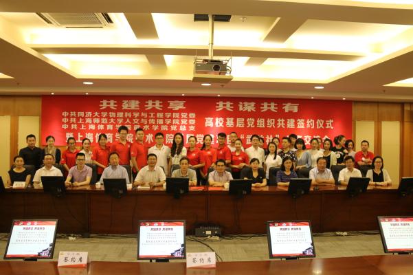 学院党委书记周斌、上海师范大学人文与传播学院党委书记戴冰、上海体育学院武术学院党总支书记霍圣录进行了联建签约活动,标志着三所高校二级学院基层党组织党建联建工作正式启动。