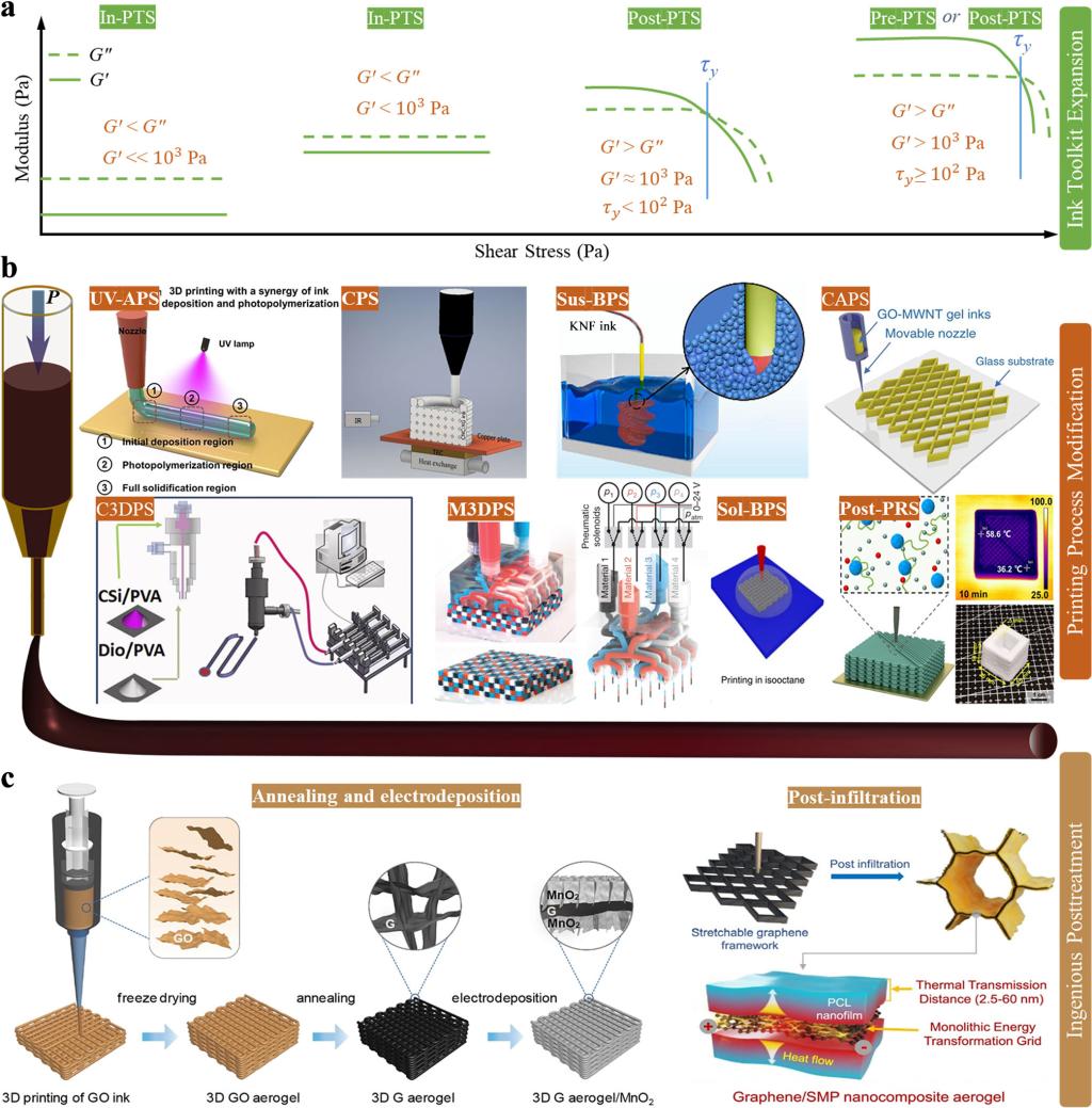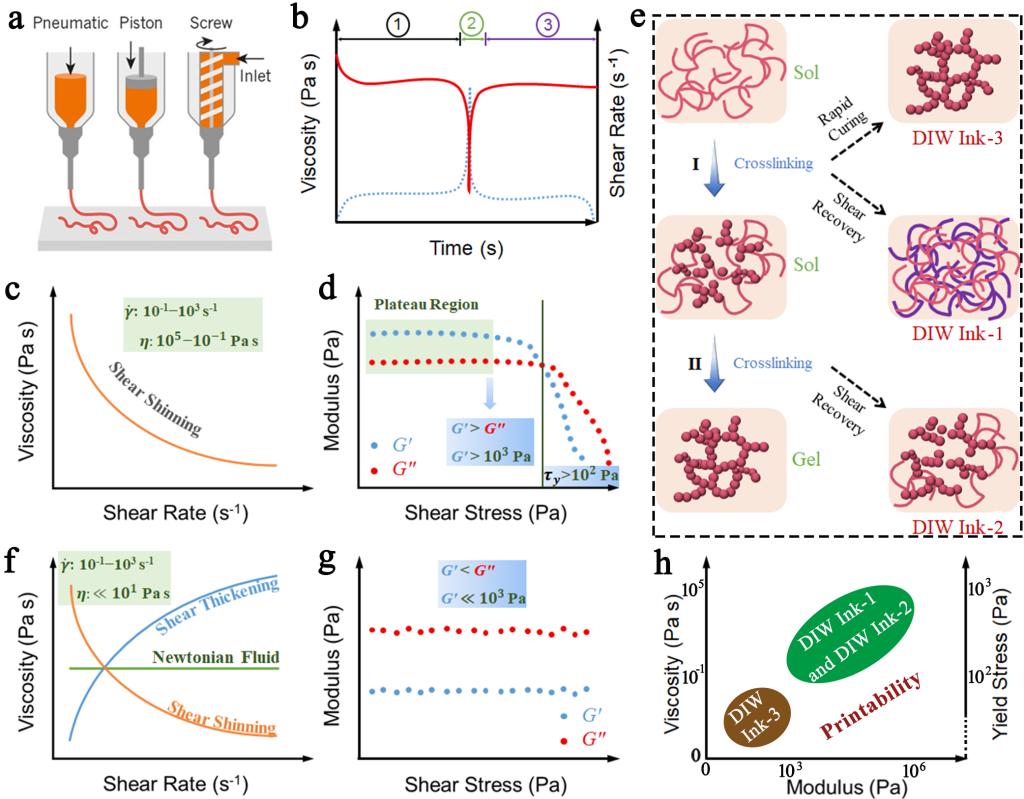 图1、DIW机制及墨水流变学