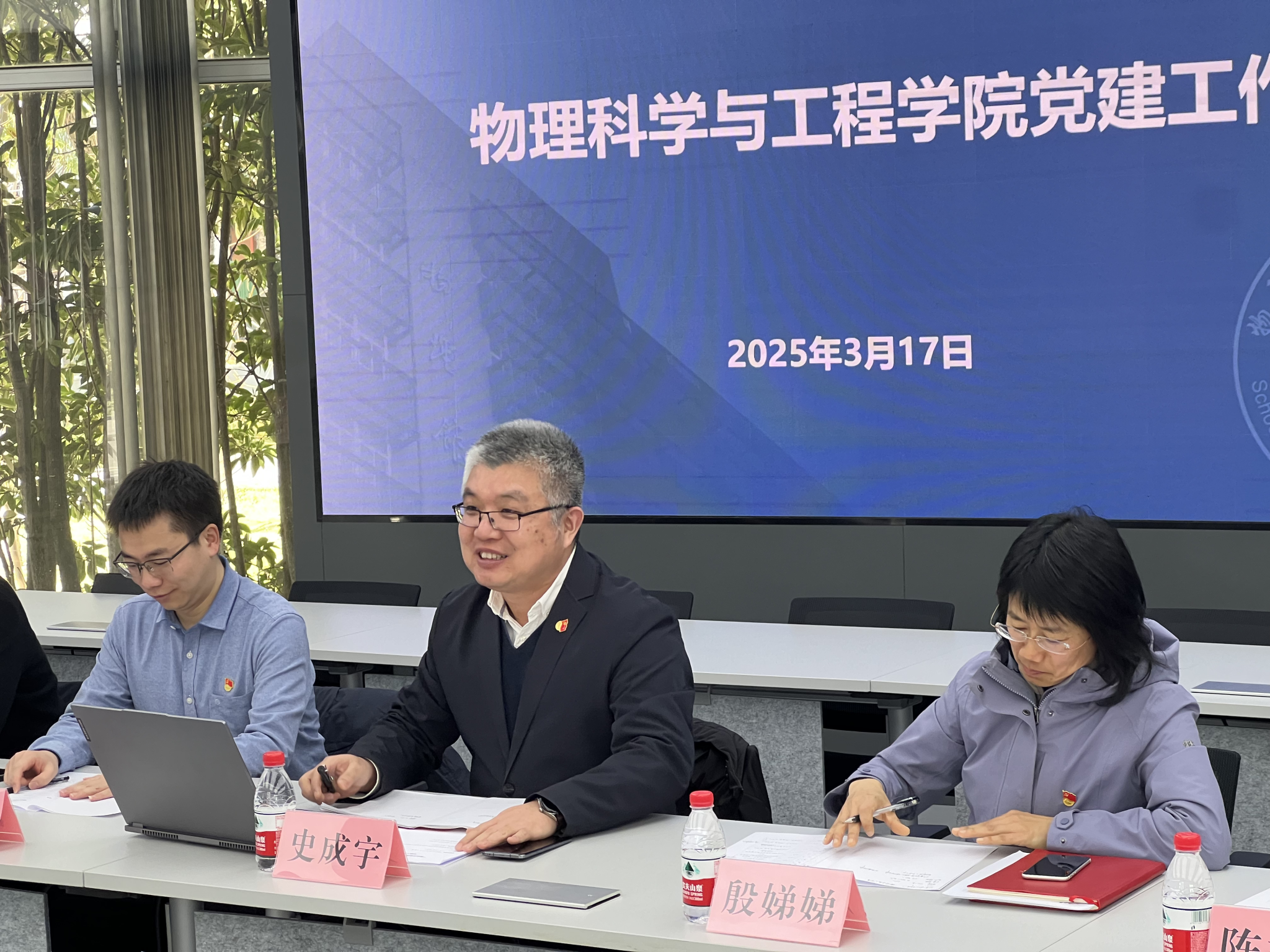 随后,史成宇书记介绍了我院党建工作整体布局与实践成效。他指出,学院按照研究方向设置党支部,构建了紧密结合业务团队的师生混合党建体系,创新推动了党建和队伍建设、教学科研、人才培养的深度融合。通过夯实基层党组织建设,充分发挥各方优势,有效推动了“三全育人”视域下学院人才培养的新机制。史书记表示,高质量党建工作不仅为学科发展提供了坚强政治和组织保证,更激发了师生的创新活力和集体荣誉感,为学院在人才培养和科技创新等方面取得卓越成绩注入了强大动力。