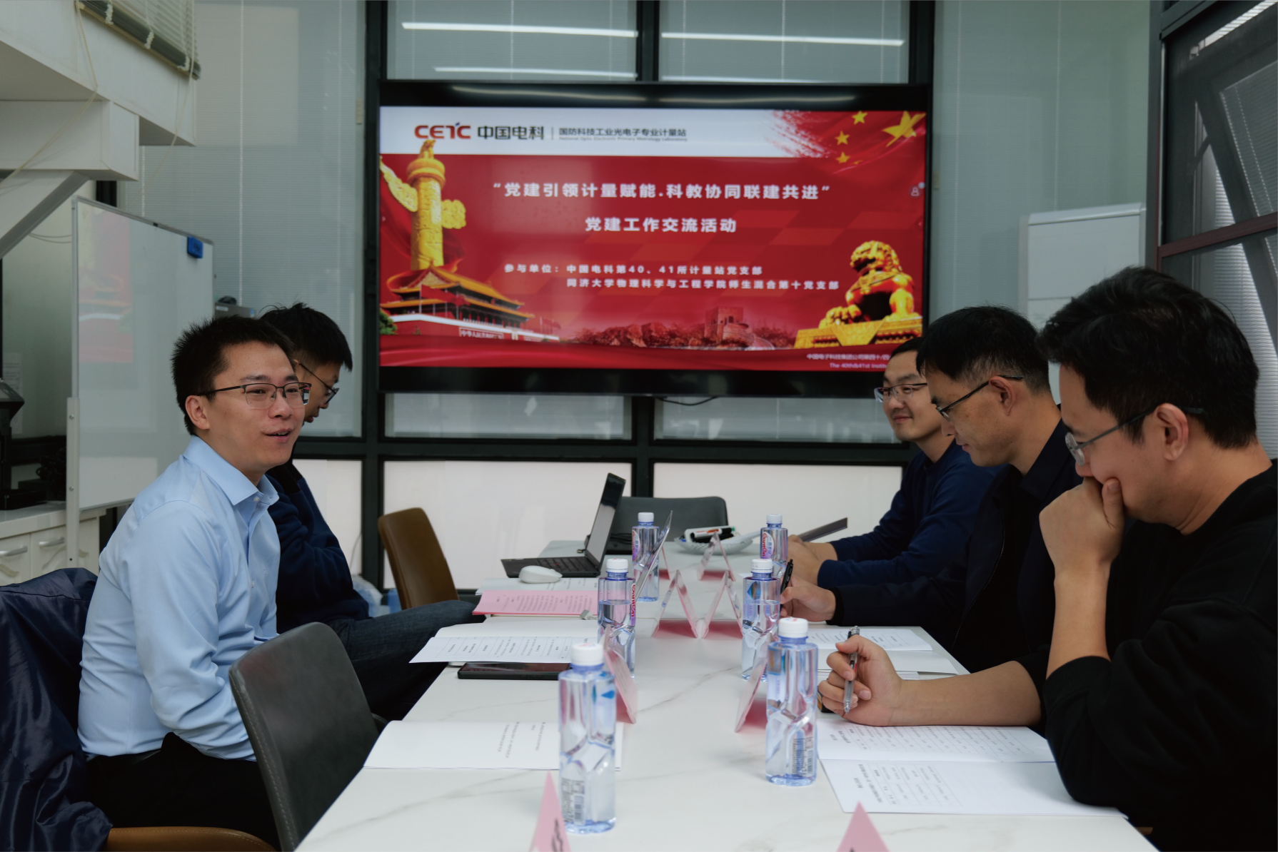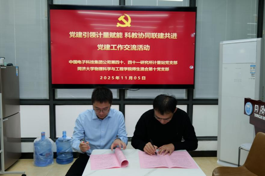 11月5日下午,“党建引领计量赋能·科教协同联建共进”党建工作交流活动在四平路校区光学馆会议室举行。yl7703永利集团师生混合第十党支部与中国电子科技集团公司第四十、四十一研究所计量站党支部围绕党建引领、计量赋能、产学研协同育人等主题开展党建联建并签署联建协议。