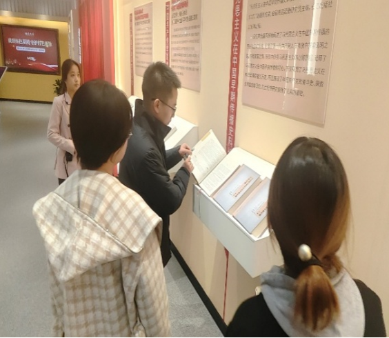 11月19日下午,师生一行抵达嘉兴大学,受到嘉兴大学统战部副部长邹巍的热情接待。在邹部长的带领下,师生一行前往嘉兴大学校史馆、育人成果展示馆进行参观学习,通过实地走访、聆听讲解和互动交流,师生们深入了解了嘉兴大学百余年的办学历史和红色文化育人成果,对以“开天辟地、敢为人先的首创精神,坚定理想、百折不挠的奋斗精神,立党为公、忠诚为民的奉献精神”为核心的红船精神有了更深刻的体悟。此次参观活动不仅加深了三位同志对嘉兴大学历史与传统文化的了解,更通过沉浸式的红色教育,让红船精神深入人心,为师生提供了一次深刻的思想洗礼和初心重温。