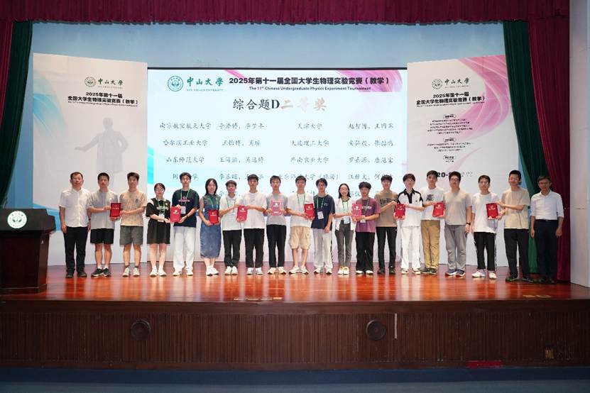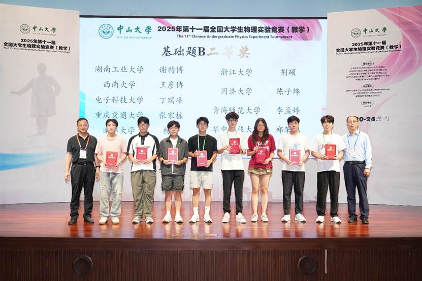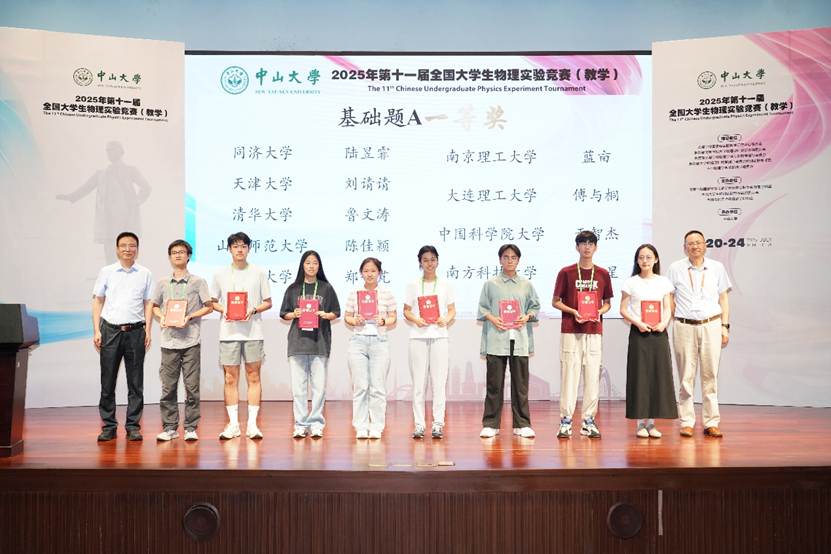 7月20日至24日,第十一届全国大学生物理实验竞赛(教学)在中山大学广州校区和珠海校区举办。国家级物理实验教学示范中心、教育部物理学基础学科拔尖学生培养计划2.0基地、国家理科基础科学研究和教学人才培养基地物理学专业点、国家工科基础课程物理教学基地所属高校及第九届、第十届全国大学生物理实验竞赛(创新)获奖高校共120所高校参加竞赛,参赛学生400余人。yl7703永利集团参赛队伍由2023级本科生陆昱霏、陈子烨及2022级本科生李乐暄、王筱涵4名学生组成,蒋涵文老师担任领队。经过激烈角逐,yl7703永利集团代表队在广州赛区斩获一等奖1项、二等奖2项,全员获奖。yl7703永利集团荣获优秀组织奖。同时,陆昱霏以基础题A赛道第一的优异成绩荣获“最佳队员”称号,并作为最佳选手代表在闭幕式上发言。